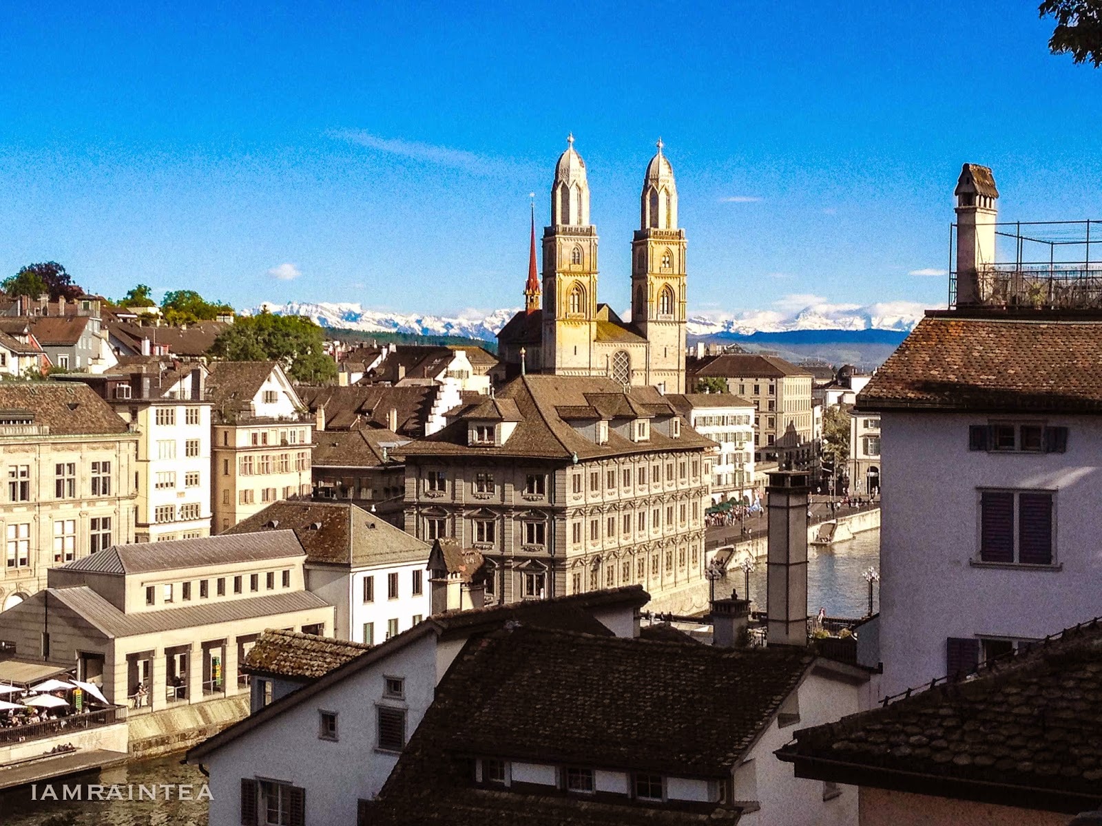 Right where this cafe was, you can see a beautiful stretch of the river and some mountain view with snow-capped mountains! My picture right at this spot is too pixelated to share, I would share those that I took from Lindenhof, a slightly elevated point in the city, later in this post.
